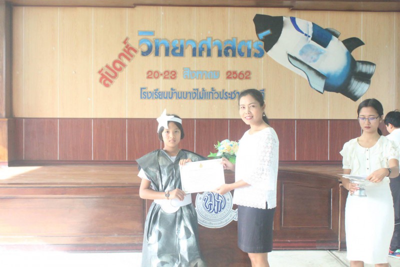 พิธีมอบวุฒิบัตรจาก ดร.กันยมาส ชูจีน ผู้อำนวยการโรงเรียนบ้านบางไม้เเก้วประชาสามัคคีเเก่นักเรียนที่ได้รับรางวัลการเเข่งขันในรายการต่างๆ เนื่องในโครงการรักษ์ภาษาไทย ประจำปีการศึกษา 2562