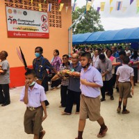 ผอ.สุดใจ ดำคำ ตัวแทนคณะครูนักเรียนโรงเรียนบ้านบางไม้แก้วประชาสามัคคี ร่วมแห่และทอดกฐิน ณ สำนักสงฆ์บางไม้แก้วฯ