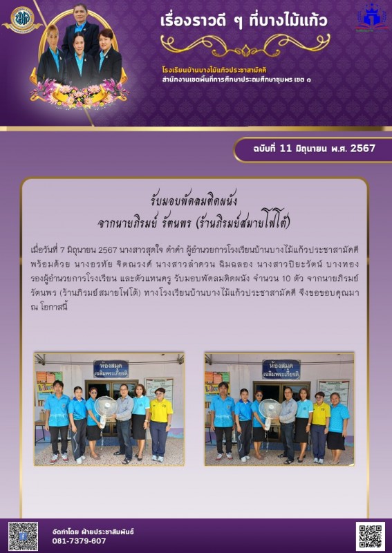 รับมอบพัดลมติดผนัง จากนายภิรมย์ รัตนพร (ร้านภิรมย์สมายโฟโต้)