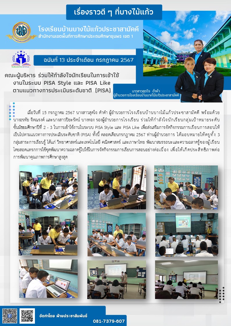 คณะผู้บริหารร่วมให้กำลังใจนักเรียนในการเข้าใช้งานในระบบ PISA Styie และ PISA Like